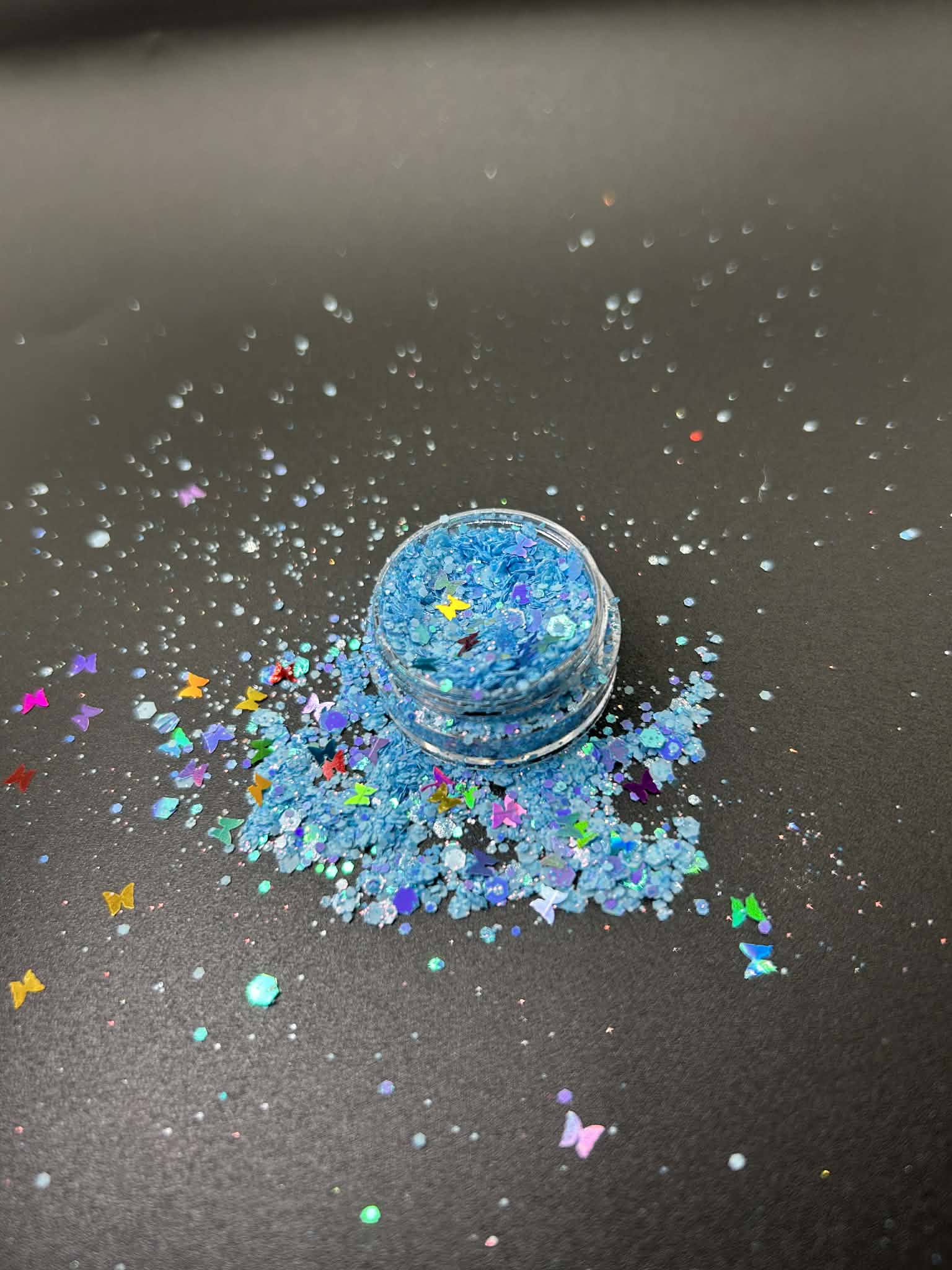 Sky Breeze Glitter Gel transforms your look with shimmering sparkle perfect for hair, face, and body. This versatile formula delivers long-lasting shimmer that catches the light beautifully, whether you're creating bold eye looks, adding glamour to your hair, or enhancing your skin with a radiant glow. Easy to apply and blendable, it's your go-to product for festivals, parties, or everyday sparkle. Cruelty-free and designed for all skin types, Sky Breeze brings effortless brilliance to any beauty routine.